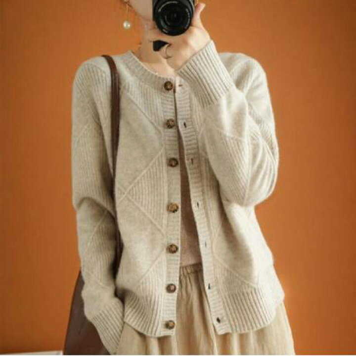 厚手 冬物 カーディガン カシミヤ ゆったり ケーブル編み トップス ラウンドネック レディース 羽織り 秋 オフィス