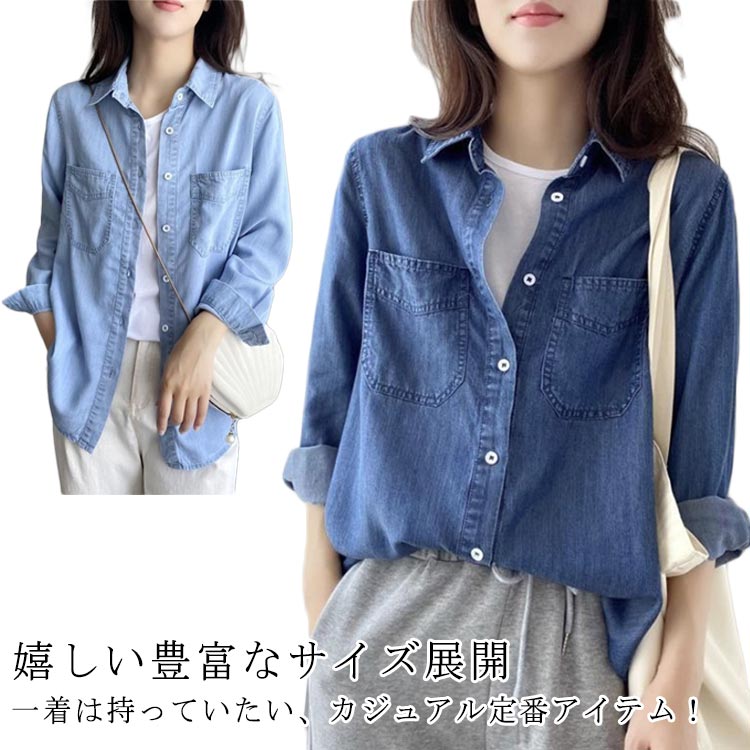 ジーンズ トップス デニムシャツ デニム ファッション ブラウス 長袖 レディース シャツ 春 秋 大きいめまで シンプル