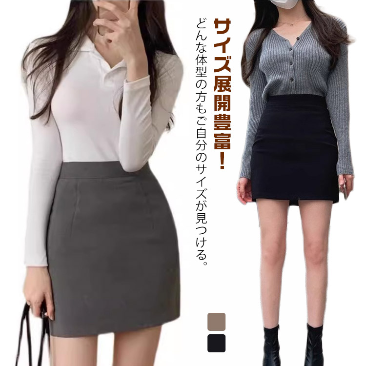 ~3 タイトスカート ミニ丈 ストレッチ 無地 大人女性 脚長効果