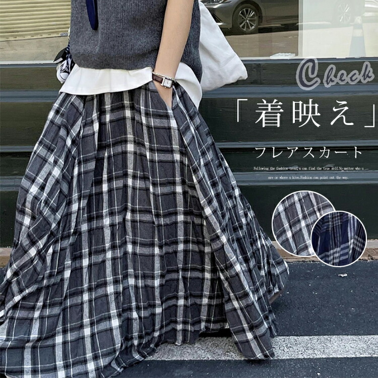 チェックスカート ロングスカート フレアスカート ラインスカート マキシスカート 体型カバー レディース 女性用 学生 大人 春秋冬 あったかい おしゃれ 上品 ファッション ゆったり カ かわいい