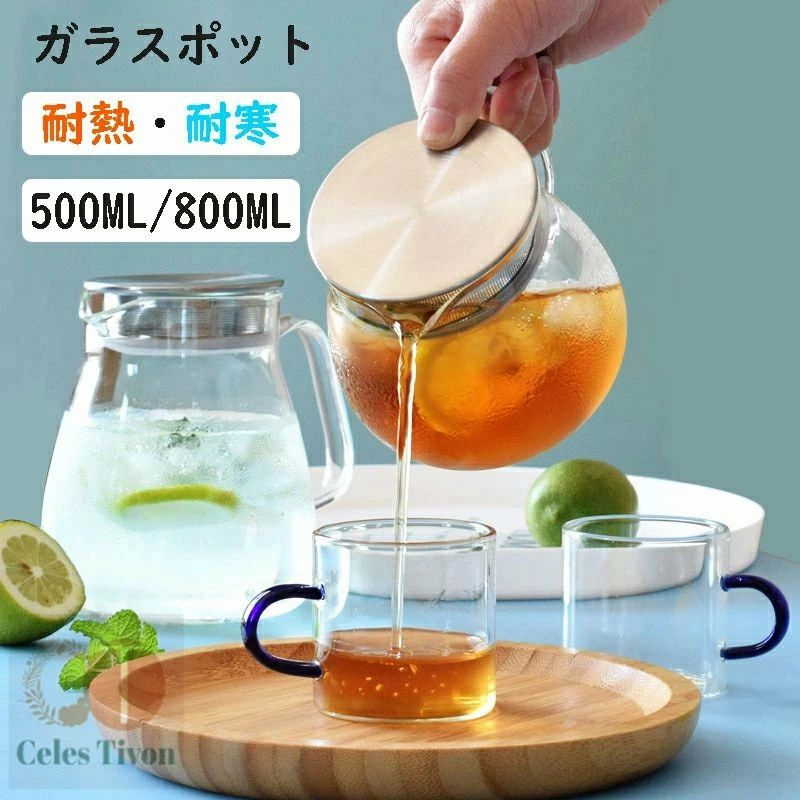耐熱ガラス ティーポット ステンレス蓋 茶こし付き ワンタッチティーポット 500ml 800ml コーヒーポット お茶 紅茶 ハーブティー 緑茶 ポット 耐寒 2~3人用扱いやすい 食洗機対応 耐熱