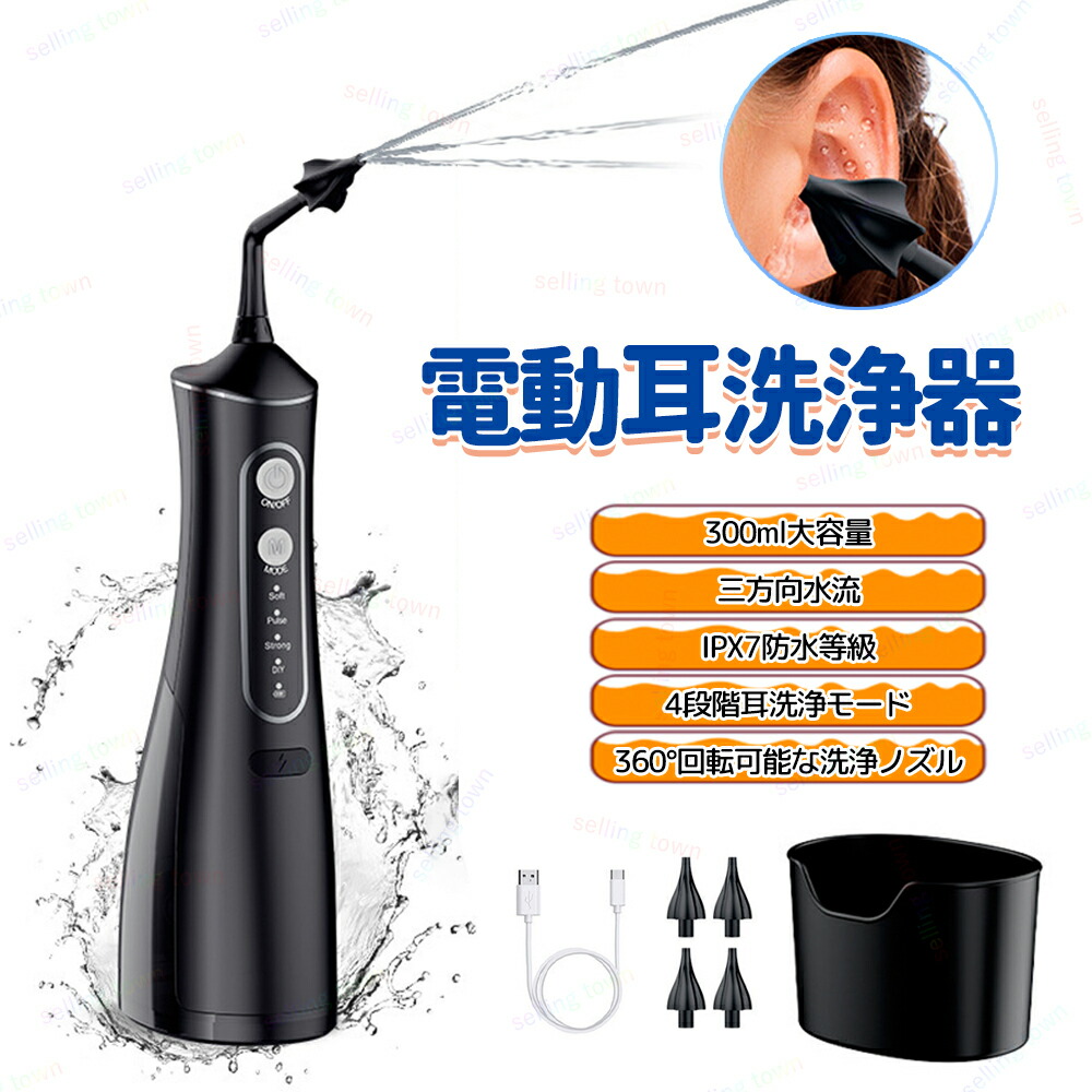 電動 耳洗浄器 イヤークリーナー 耳垢掃除機 電動耳洗浄機 耳垢除去 水圧 耳掃除 耳洗潔 耳垢取り 4種類水流モード 300mL 4個着替えノズル 耳クリーナー 子供家庭用 防水 耳掃除キット耳洗浄