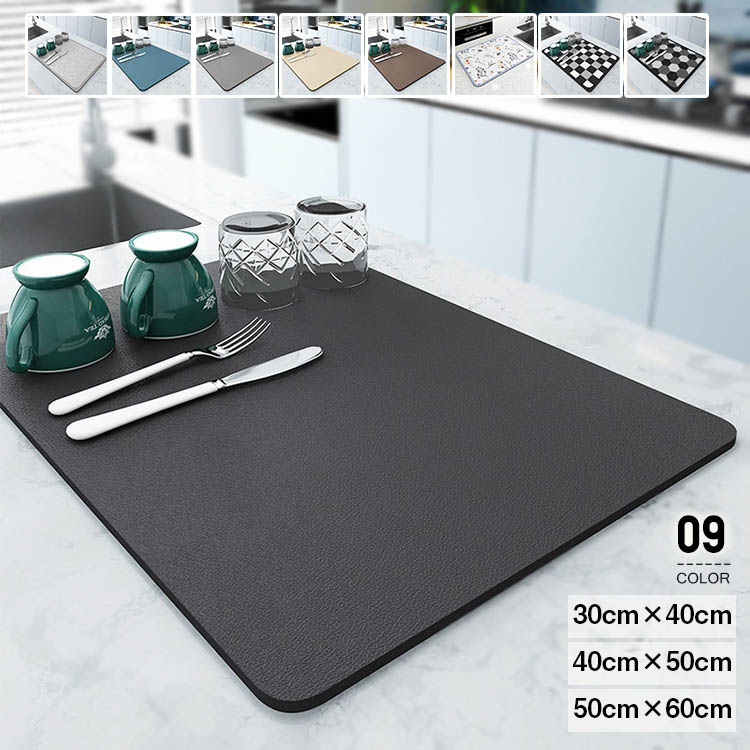 水切りマット キッチン 速乾吸水マット 珪藻土 キッチン食器乾燥マット 30x40cm 40x60cm 丸めて収納 洗える 滑り止 皿置き スポンジワイプ 抗菌 消臭 耐油性 隔熱 お手入れ簡 速乾性