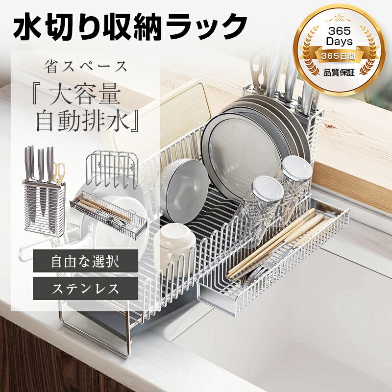 縦置き・横置き2 304 ラック 大容量 水切りカゴ スリム水が流れる 食器棚 流れる キッチン おしゃれ 抗菌 チン収納 省スペースで抜群