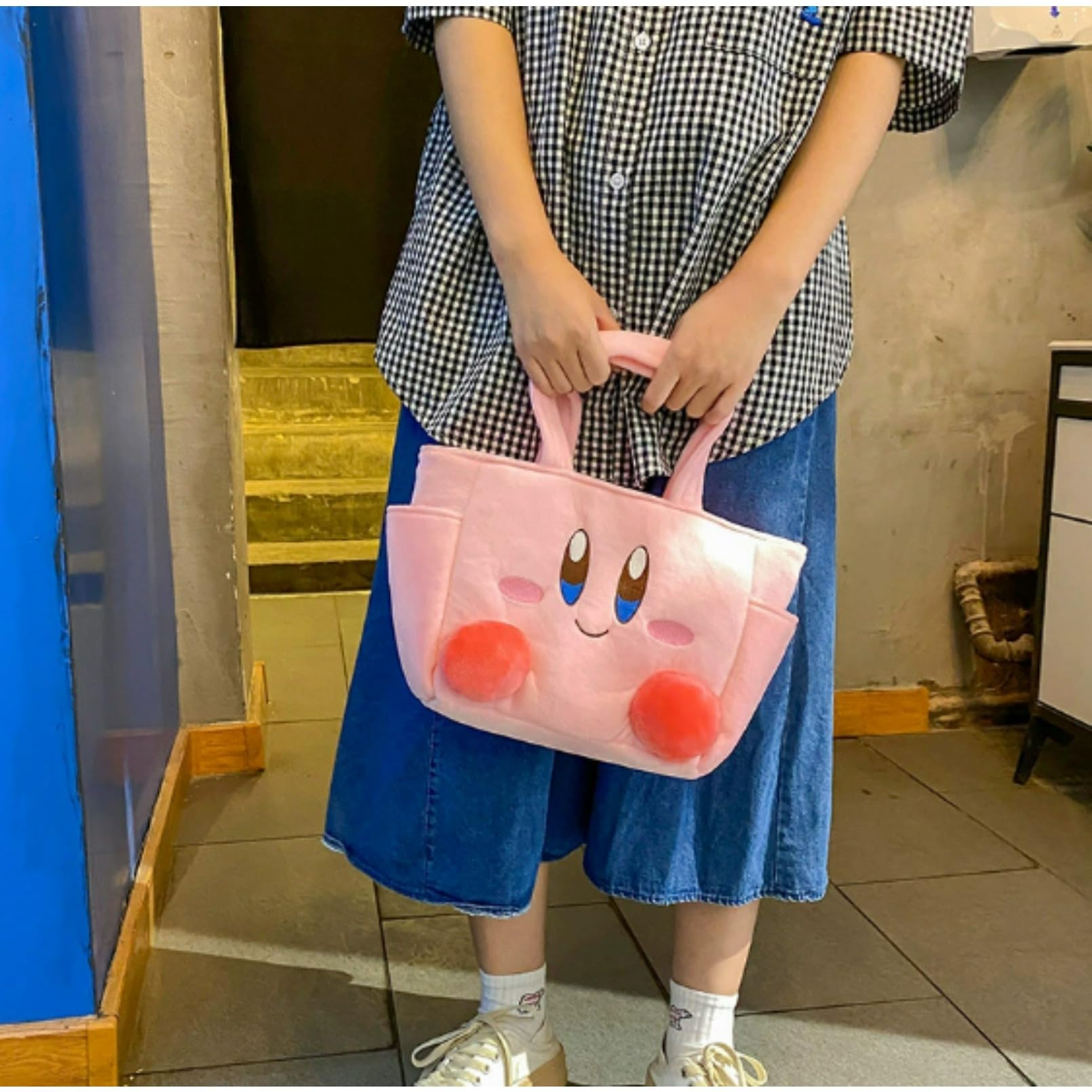 星のカービィ 立体毛布ランチトートバッグ - 可愛いJK風手提げバッグ 収納ポーチ ピンク 32×20×10cm インスタ映え ギフト対応 軽量