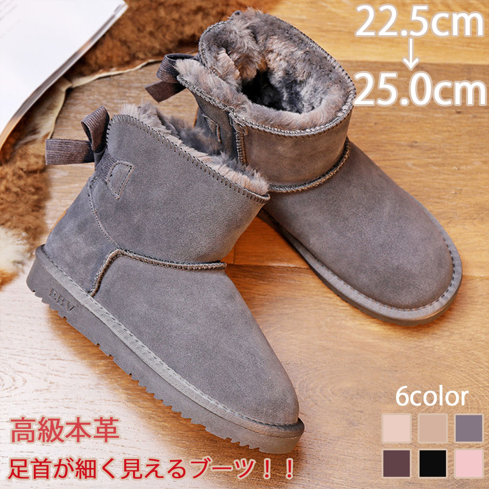 +500本革 ムートンブーツ レディース足首が細く見えるブーツ ショートブーツ 痛くない ブーティ 歩きやすいリボン付 疲れない靴