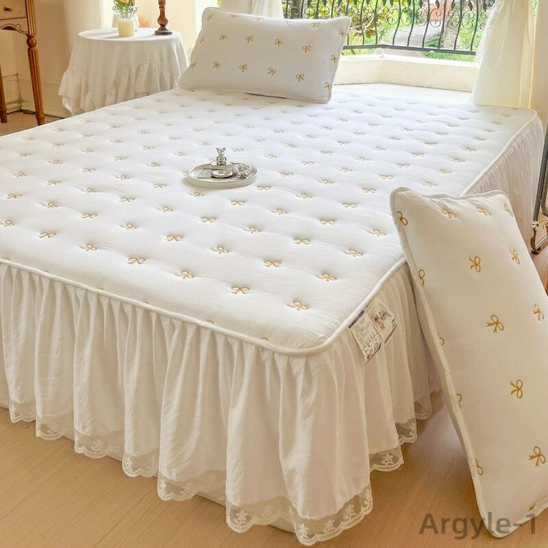 ベッドスカート キルティング マットレスカバー フリル付き 敷パッド一体型 中綿 ズレ防止 オールシーズン 姫系