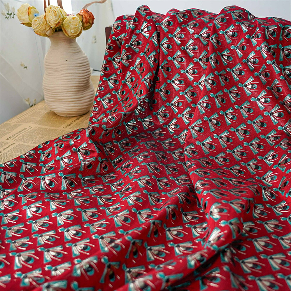 157幅 90単位 ジャカード生地 エンボス生地 生地 布 布地 色織り生地 ミツバチ柄 レッド ブルー 蜜蜂柄