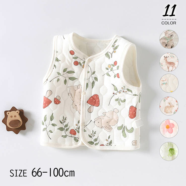 ベビーベスト 60cm 70cm 80cm 防寒 春秋冬 新生児 赤ちゃん用 男の子 女の子 くま ベージュ 冬物 出産祝い あったか こども服 キッズ キルティング 子供服