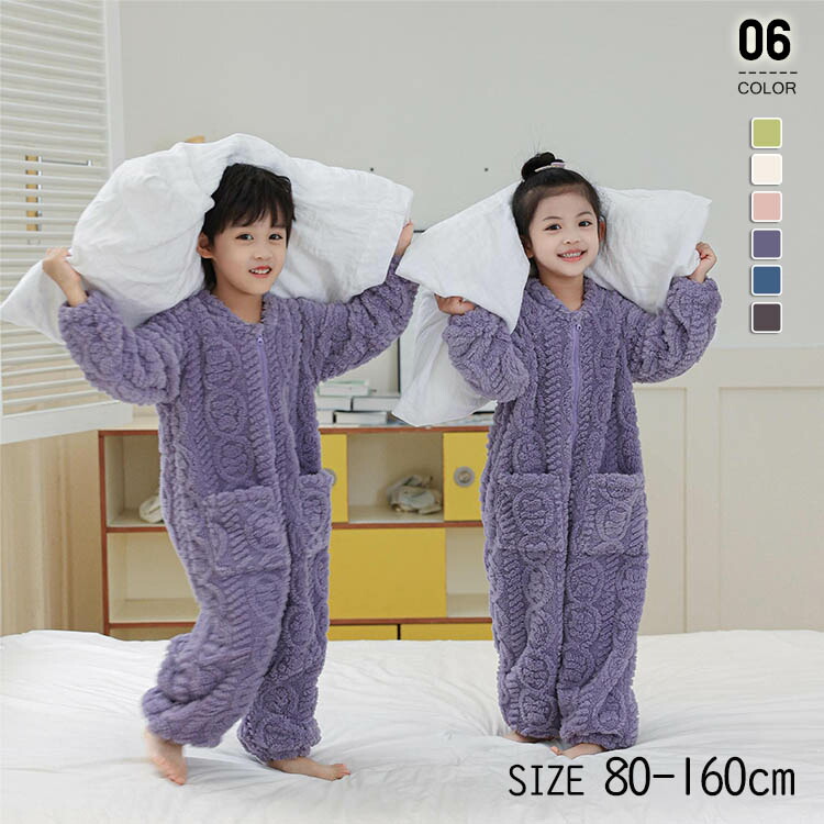 ルームウェア パジャマ 着る毛布 レディース オールインワン ロング キッズ 長袖 女の子 男の子 ジュニア ボア 春秋冬 80 90 100 110 120 130 150 160 あ 140