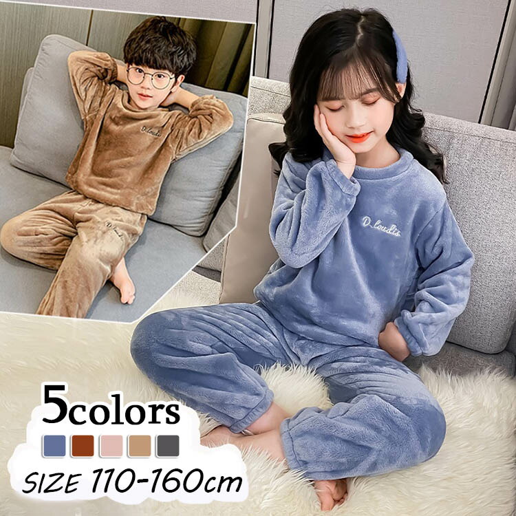 厚手 冬 冬用 ロングパンツ 長袖 もこもこ パジャマ ボア ふわふわ ルームウェア 上下セット プルオーバー セットアップ キッズ ベビー 女の子 男の子 防寒 保温 あったか ホームウェア