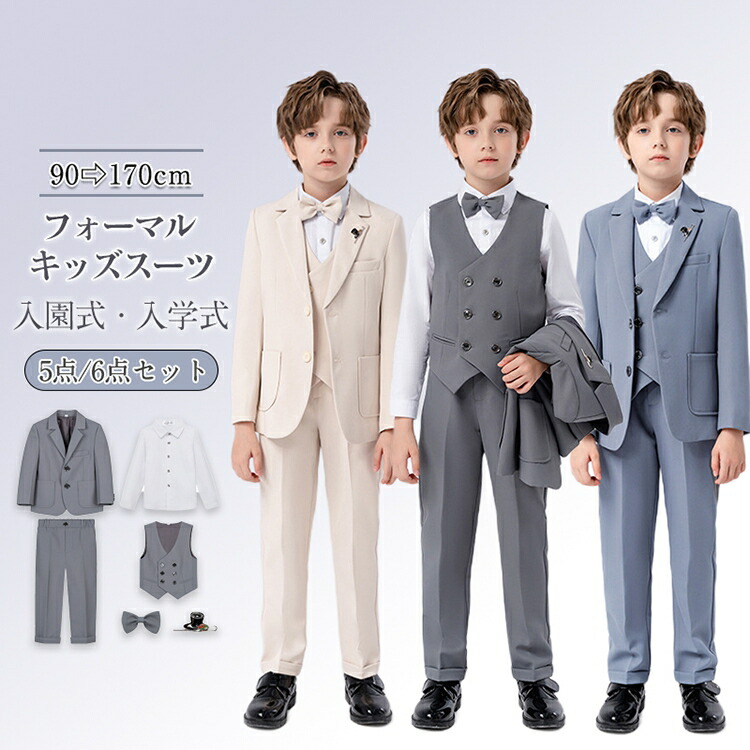 フォーマルスーツ 男の子 子供服 ブラックスーツ お洒落 ピアノ発表会 結婚式 入学式 入園式 発表会 男子 キッズスーツ 定番 無地 フォーマル ジュニア スーツ 6点セット セレモニー 子ど 5点