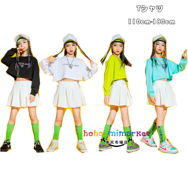 ダンス 衣装 ヒップホップ 女の子 トップス Tシャツ チア へそ出し 体育祭 文化祭 学園祭 舞台 団体服 応援団 HIPHOP ガールズ ジャズダンス衣装 長袖 ブラック ホワイト 演出