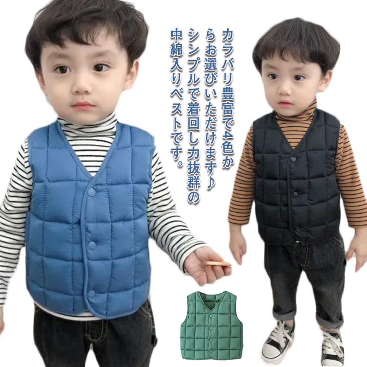 インナーベスト Vネック ダウン風ベスト 袖なし 子供服 トップス キッズ 中綿ベスト 軽量 スナップボタン 上着 レイヤード 防寒 防風 羽織 男の子 女の子 女児 こども服 前開き 男児