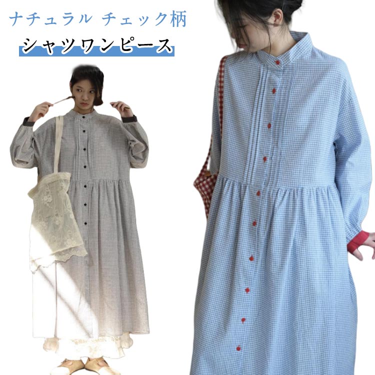 ワンピース 秋 春 チェック柄 オフィス レディース 食事会 Aライン フレア 長袖 チェック シャツワンピース 大人可愛い オシャレ 着痩せ マキシワンピース 綿麻風 体型カバ ゆったり