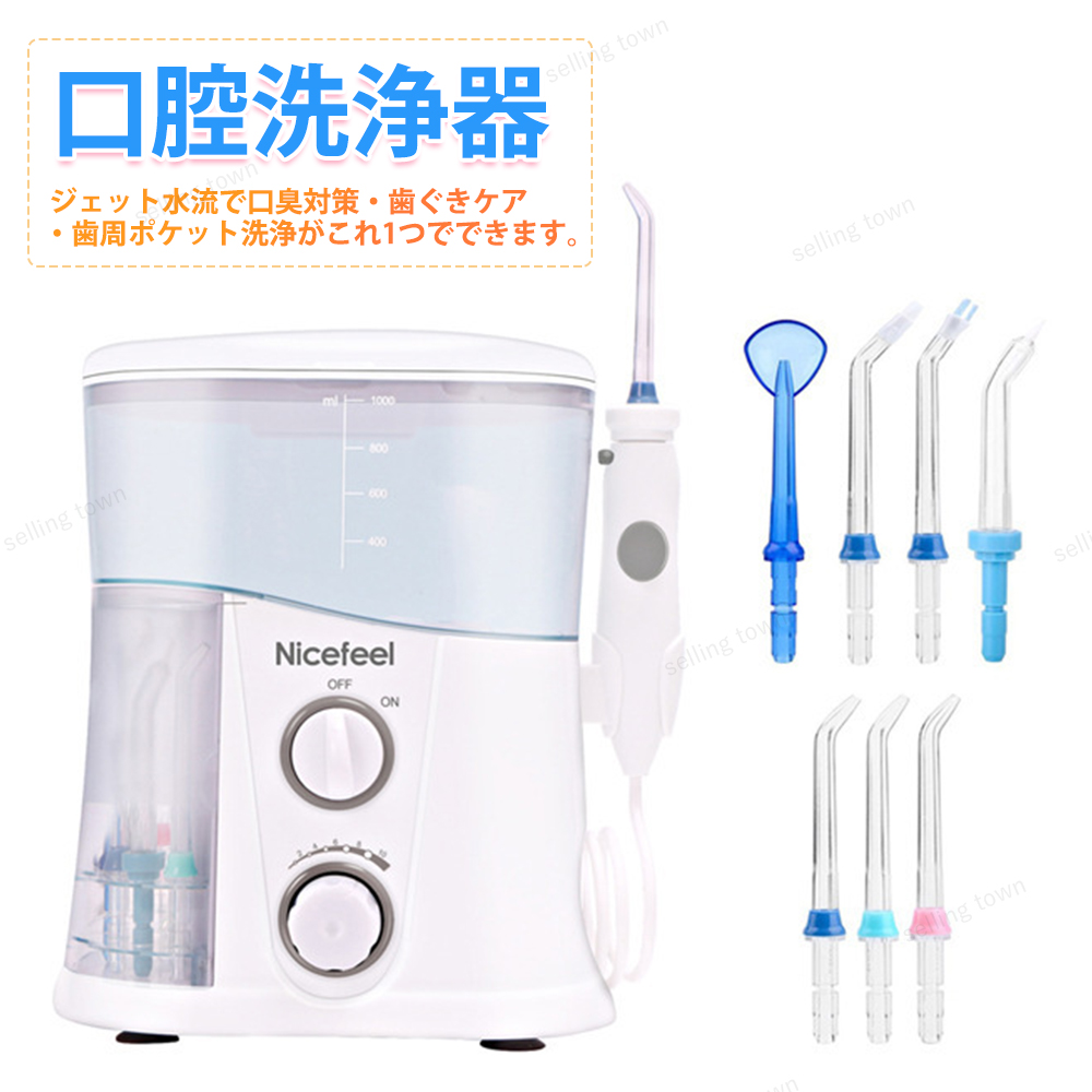 FDA認証 口腔洗浄器 ジェットウォッシャー 1000ml 10段階水圧 替えノズル7本 口洗浄 高圧口腔洗浄 デンタルウォッシャー 口内洗浄 歯石歯垢とり 歯間ジェット洗浄 歯間 汚れ 歯 据え置き
