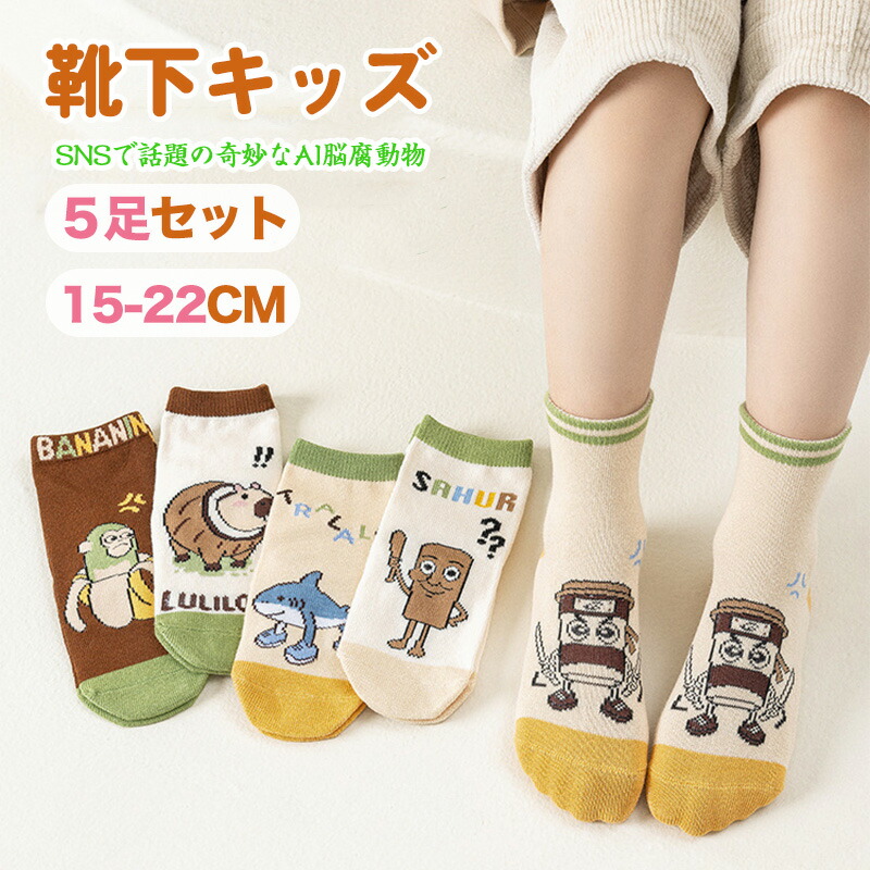 トゥントゥントゥンサフール イタリアンブレインロットTungTungTungSahur クルーソックス 靴下 くつした アンクルソックス キッズ 5足セット イタリアンブレインロット ショートソックス