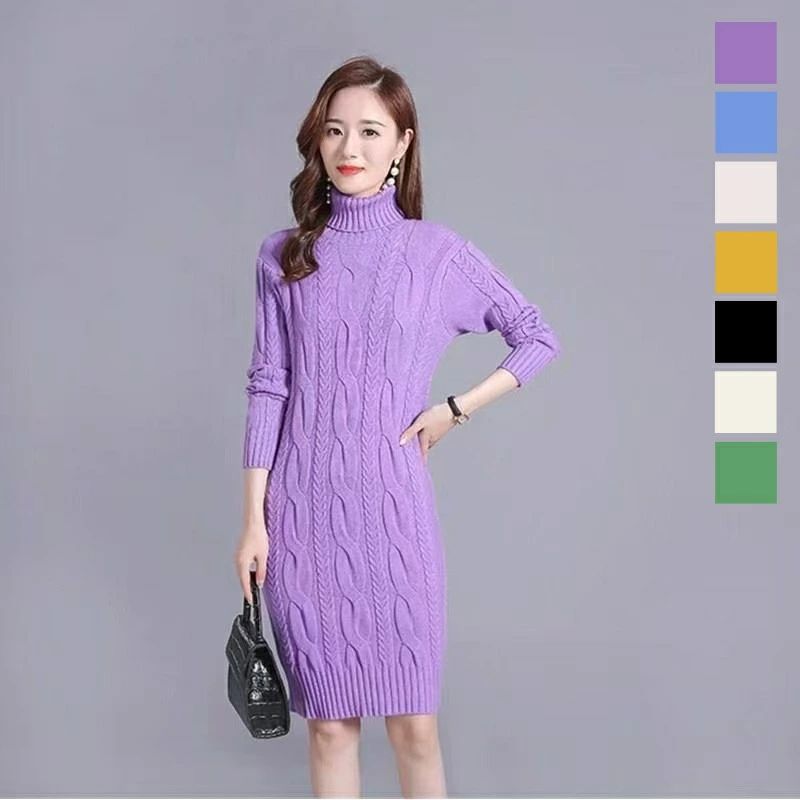 秋冬使いやすい ケーブルニットワンピース 長袖 セーターワンピ ロング丈 レディース タートルネック