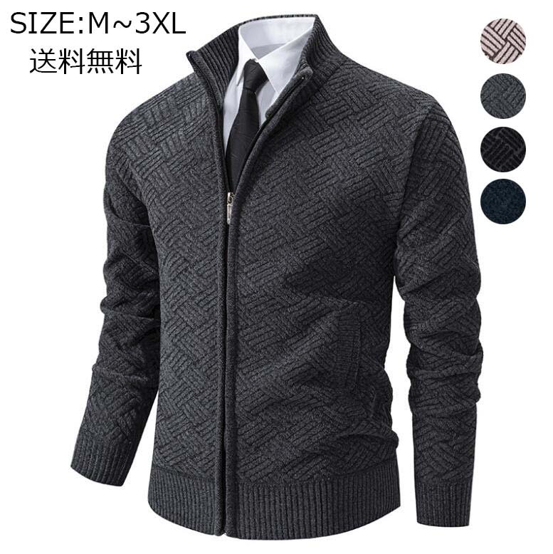 メンズファッション ブルゾン カジュ カーディガン トップス ビジネス ニットジャケット 長袖 立ち襟 上着 ニット 男性